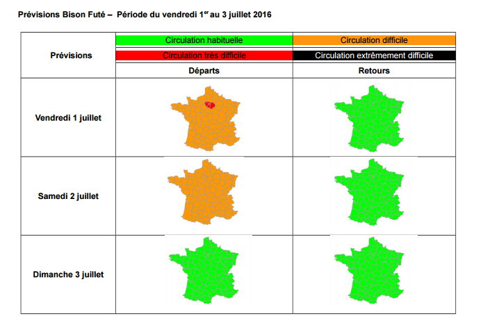 Bison Futé voit orange dans le sens des départ ce samedi et