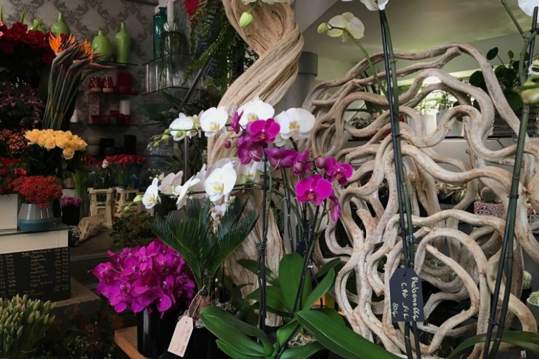 Wax Flower est installée dans le VIe arrondissement de Paris. Cette petite boutique n'est pas facile à trouver. Il faut longer les murs et pousser la porte vitrée pour entrer dans un univers de fleurs du monde entier. "On est tombé amoureux de cette boutique quand on l'a visitée avant de l'acheter. On peut faire des tas de choses, elle est haute de plafond, elle est très atypique", dit Thierry, l'un des deux gérants. Mais ce qui lui plaît particulièrement, c'est la proximité avec Les Deux magots et le Café de Flore. "Cette petite rue, avec ses pavés d'origine, donne l'impression d'être toujours au XVIIe siècle", poursuit-il.