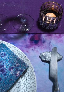 Vous laisserez votre nappe en boule sécher toute la nuit, près d’un radiateur, puis ensuite à la machine, un cycle à 30°, pour fixer la couleur. Et c’est terminé. Avec cette technique, vous obtiendrez une nappe avec une multitude d’effets colorés comme des constellations. Des dégradés de couleur qui se fondent ensemble : bleu, vert et violet pour un effet givré. Bien sûr, les teintes c’est comme vous voulez. Prenez juste des teintes complémentaires.