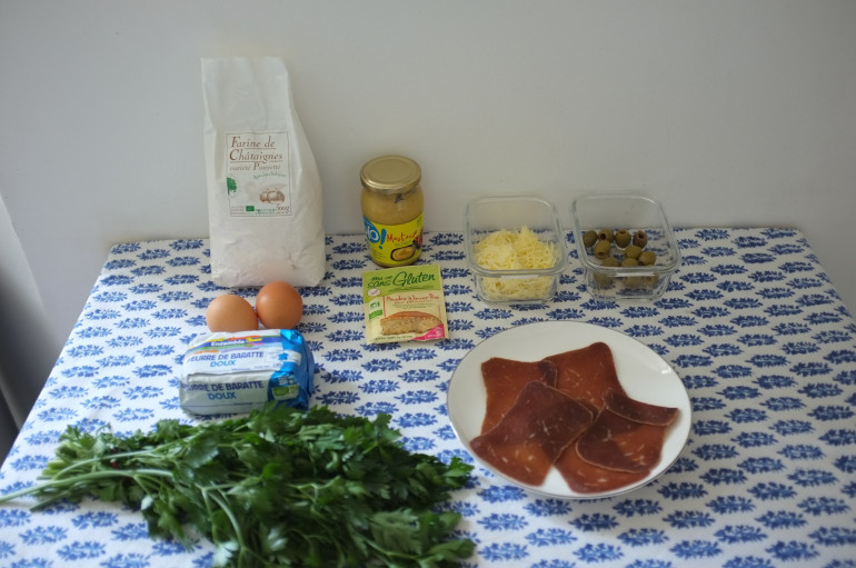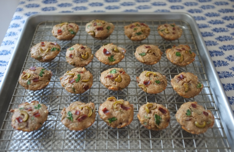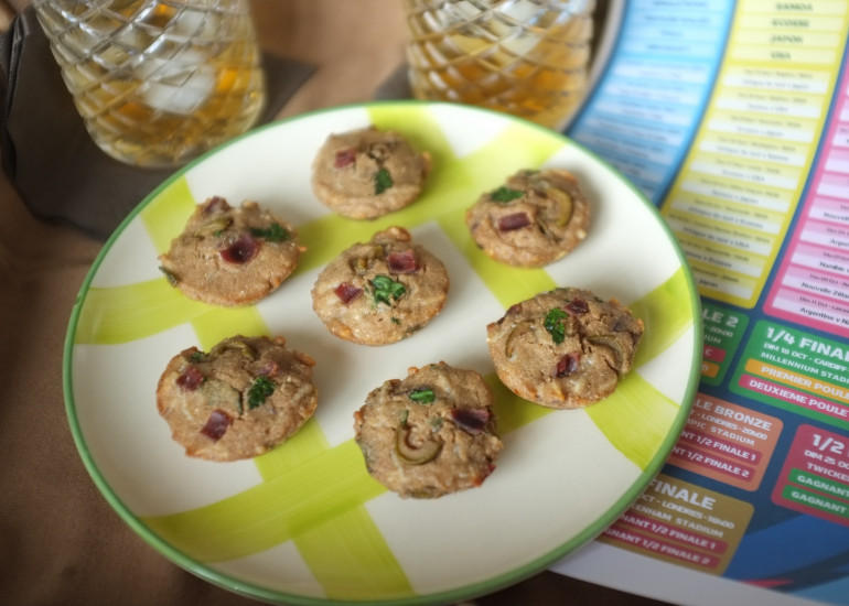 Des minis cakes sans gluten châtaigne, olive et viande de grison pour un plateau télé devant les matchs