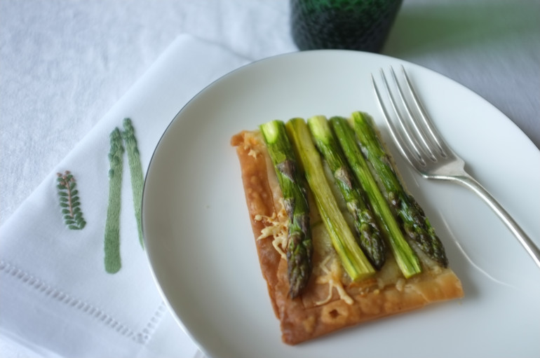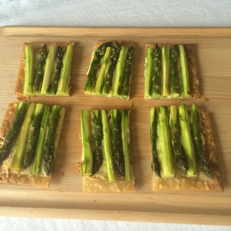 Préparer une pâte feuilletée sans gluten "maison" nécessite une grande dose de beurre pour obtenir l'équivalent d'une pâte feuilletée "normale". Mon choix se porte alors sur une pâte feuilletée sans gluten toute prête et Bio. Cette pâte de très bonne qualité qui, bien que différente car beaucoup moins grasse, est également très croustillante. Les asperges sont présentées tête bêche afin que chaque part profite de belles pointes vertes.