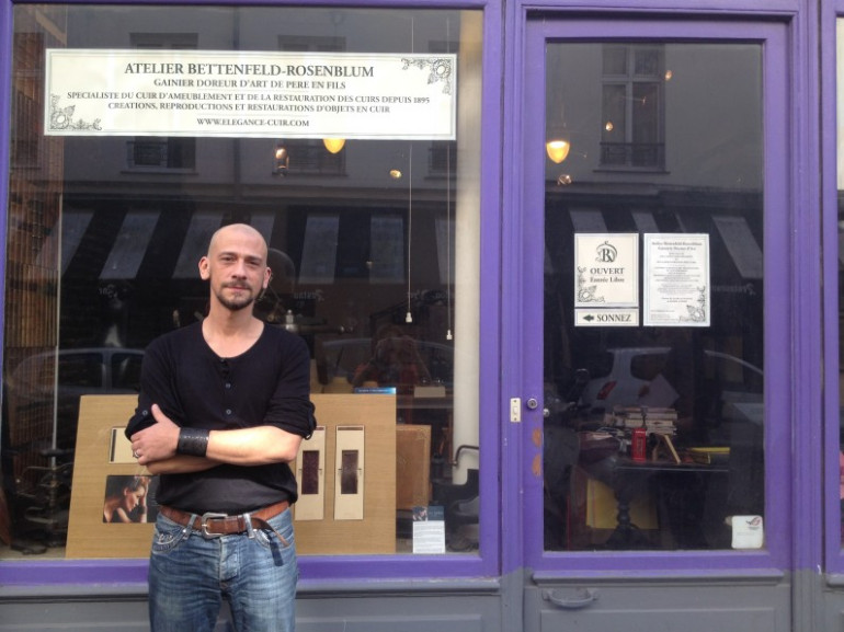 Cela fait trois ans que David Rosenblum a repris l'atelier de gainerie de son père, dans le XIème arrondissement de Paris. Il a fait ses premières armes ici à l'âge de 8 ans. "La gainerie c'est le fait de gainer tout objet en cuir, avec un principe : les raccords ne doivent pas se voir. C'est un opposé de la maroquinerie, qui utilise la couture pour les finitions", explique-t-il.