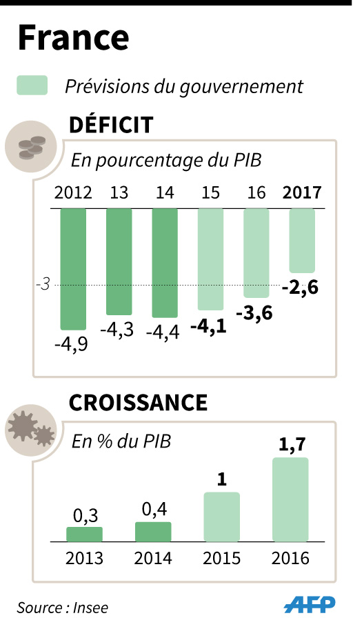 La Commission européenne a accordé la semaine dernière un nouveau délai de deux ans à Paris pour revenir sous le seuil de 3% de déficit, soit jusqu'en 2017. Mais en échange, elle lui a fixé une trajectoire exigeante : un déficit public de 4,0% en 2015 au lieu des 4,1% prévus par le gouvernement, puis 3,4% en 2016 au lieu des 3,6% prévus par Paris, et enfin 2,8% en 2017.