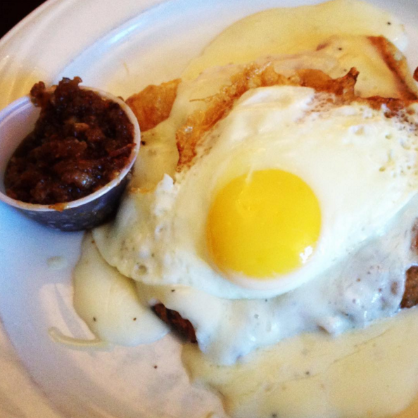 Découpez les tranches de cantal et jambon. Montez le gâteau en intercalant crêpe, jambon, fromage et beurre, jusqu'à l'épaisseur désirée. Parsemez de comté râpé et faites gratiner au four. Avant de servir, déposez un œuf sur le dessus, salez, poivrez.