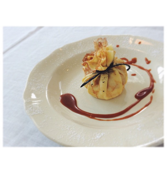 Variez les plaisirs avec cette petite crêpe en aumônière, en choisissant de la glace chocolat ou pistache, par exemple