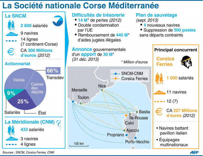 Données de la compagnies maritimes SNCM, Méridionale et son principal concurrent Corsica Ferries.