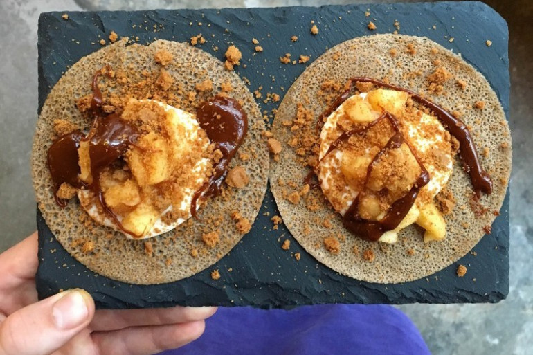 Hubert Niveleau travaille ses crêpes sous forme de tapas pour pouvoir les adapter au format traiteur