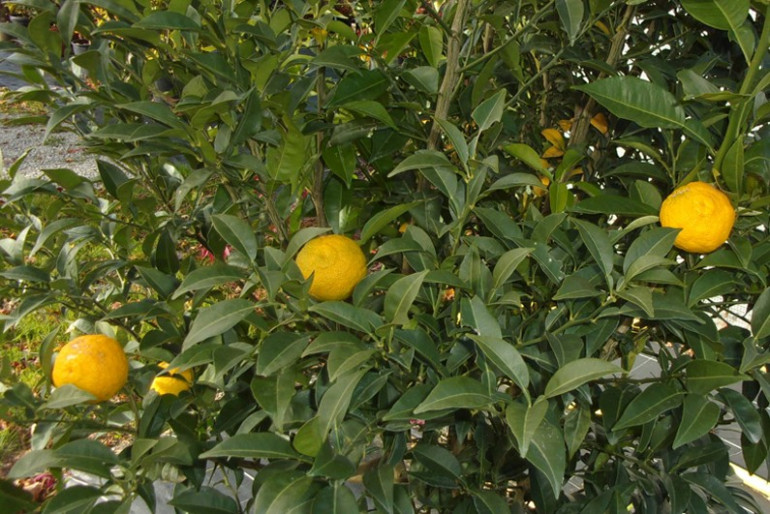 Des Yuzu, cousins des mandarines, qu'on récolte entre septembre et décembre. Ceux que j’ai apportés sont les derniers récoltés, petits mais parfumés. Le yuzu, c’est tendance en cuisine, top pour le zeste et délicieux avec les fruits de mer et le foie gras. Les botanistes l’appellent Citrus juno. Le Citrus juno pousse à l’état sauvage en Chine et en Corée mais les japonais se le sont approprié depuis plus de 1.300 ans.