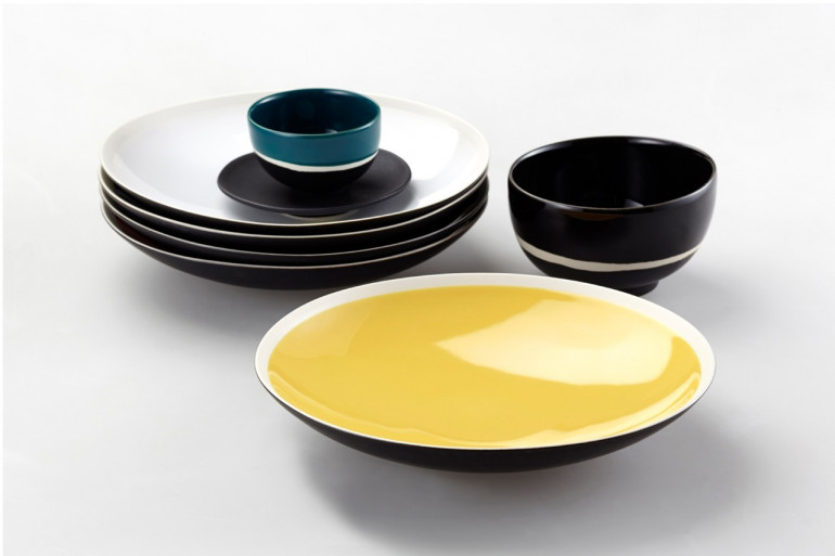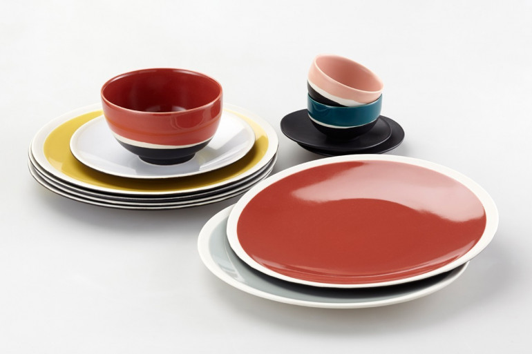 Assiettes plates, assiettes creuses, assiettes à dessert, bols, gobelets, verres, théière, centre de table, cendrier ou encore vide-poche… Toutes les pièces de la collection sont réalisées en grès et se dessinent dans des formes délicates, habillées de tons doux, de couleurs pastel.