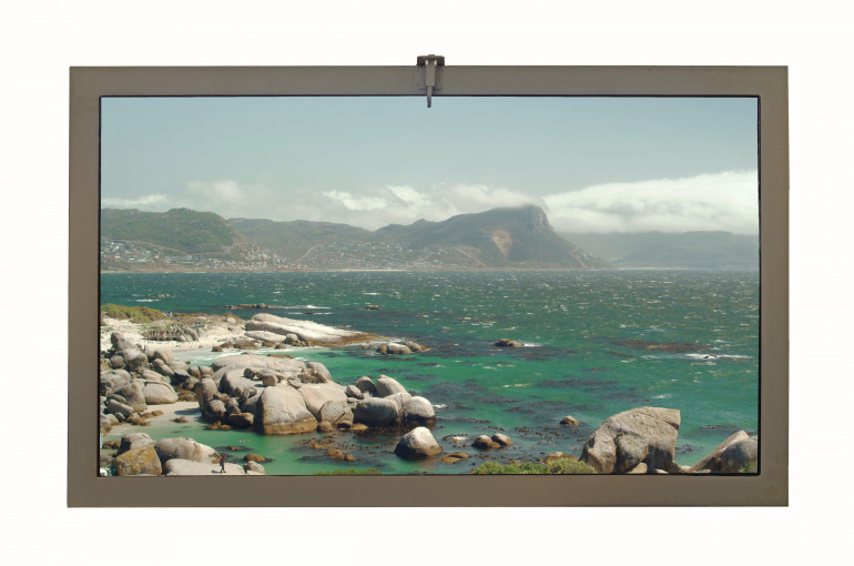 C’est une fenêtre portable et décorative que vous allez suspendre au mur, une fausse fenêtre derrière laquelle il y a un écran plat. Sur cet écran est diffusé un film que vous choisissez via une application sur votre téléphone. Et c’est ce film qui va vous faire voyager. Ce film, c’est exactement ce que vous pourriez voir en ouvrant votre fenêtre dans un autre pays. Par exemple on voit une place de Venise avec les bateaux qui passent, des enfants qui jouent au ballon, le son qui parvient au loin, c’est vivant on a l’impression d’y être. Le film dure 24 heures en temps réel. Et on a le choix avec pas mal de pays. On peut aussi avoir l’Afrique du Sud avec les pingouins de Boulders bay.