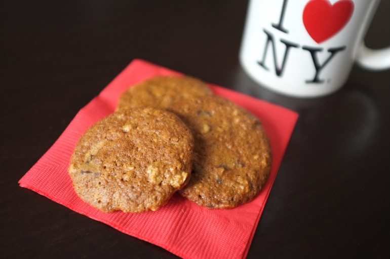 Laisser les cookies 5 mn sur le papier cuisson, mais retirer la plaque chaude d’en dessous pour éviter qu’ils continuent de cuire. Les déposer ensuite sur une grille pour qu’ils refroidissent complètement.