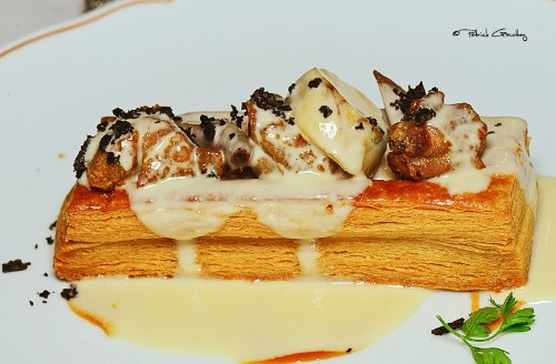 Arnaud Tabarec, nouvellement étoilé par le Michelin 2014 pour son restaurant le SeaSens, Hôtel Five à Cannes, et Geoffrey Poesson (1*, la Badiane) ont proposé une combinaison de leurs talents par un 4 mains le 28 mars dernier.
