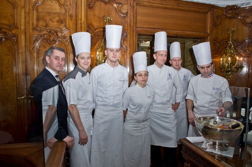 Olivier Novelli (MOF 2011, Directeur du Restaurant Le Chantecler), Jean Denis Rieubland (MOF 2007, 2*), Fabien Cocheteux, chef pâtissier et la brigade du Chantecler.