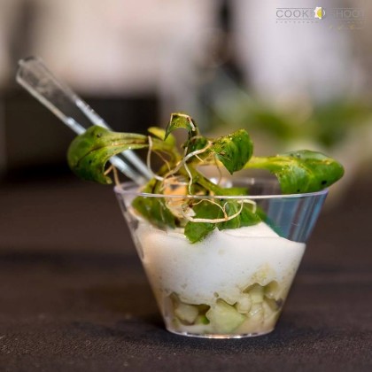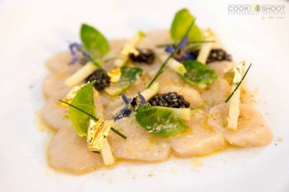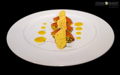 Caviar de pâtes boules au Pitacou, Coeur de saumon mariné mi-doux, cristallines de pain au citron selon Philippe Joannès ( Fairmont Monte Carlo)