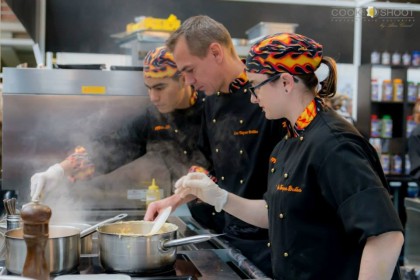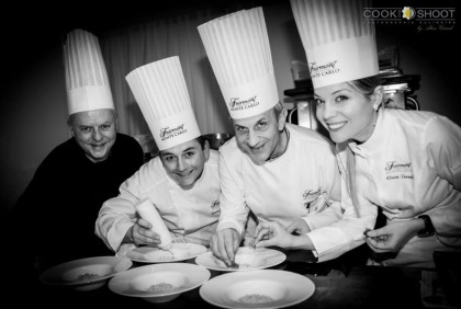 Philippe Joannès (Fairmont Monte Carlo et MOF 2000), Simon Ganache, sous chef et Guillaume Merceron, chef de partie, Fairmont Monte Carlo
