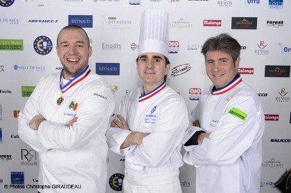 Guillaume Gomez, chef des cuisines de l'Elysées, Jean-Denis Rieubland, chef du Negresco, et Michel Roth (Bocuse d'Or et MOF), chef du Ritz Paris et du Président Wilson de Genève