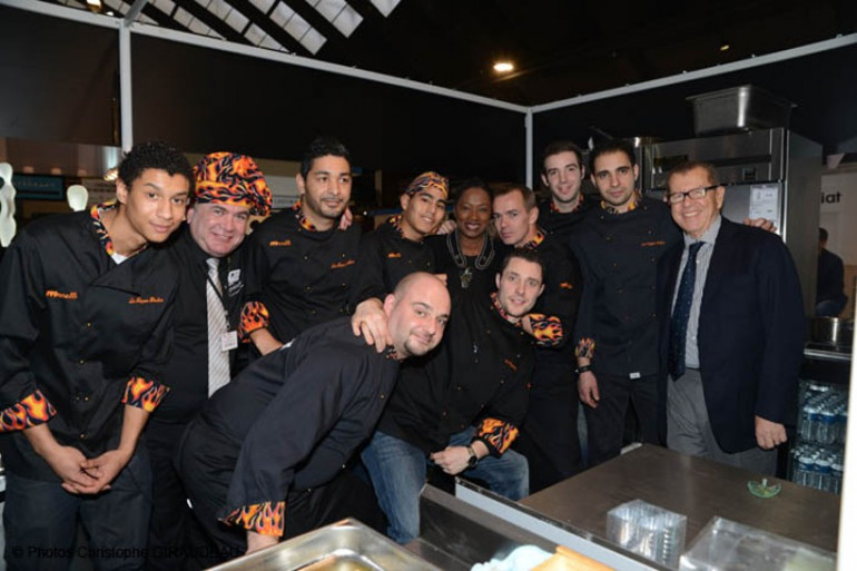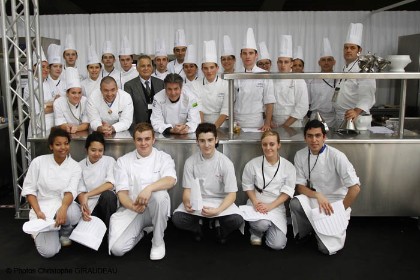 Michel Roth et Guillaume Gomez entourés des élèves du Lycée Hôtelier Paul Augier