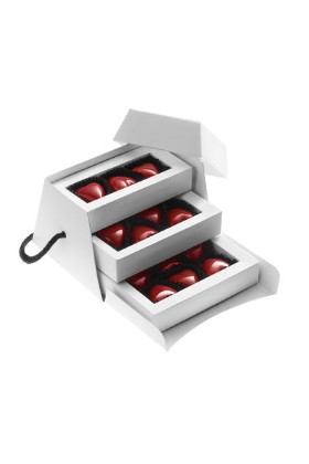 Vincent Guerlais propose également des chocolats avec notamment une Bonbonnière Pomme d'Amour garnie de bonbons chocolat praliné noir et lait....