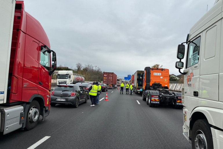 Un dirigeant d'une entreprise qui mobilise 20 camions à Villefranche-sur-Saône (Rhône), n'est pas satisfait, lui non plus. "Les annonces du gouvernement d'hier, c'est des miettes. Aujourd'hui, on n'arrive plus à travailler, on ne peut plus payer notre gasoil. C'est trop cher. On essaye de ne pas mourir. J'ai une société qui a 60 ans cette année. Ça a été créé par mon grand-père, mon père a repris derrière. On n'a jamais travaillé dans ces conditions. Donc, qu'est-ce qu'on fait ?". Ce barrage filtrant sur l'autoroute A7, avec distribution de tract, doit durer jusqu'à 13 heures.