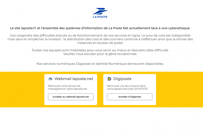 "Le site laposte.fr et l’ensemble des systèmes d’information de La Poste font actuellement face à une cyberattaque. Ceci engendre des difficultés d’accès ou de fonctionnement de nos services en ligne", peut-on lire sur le site de La Poste ce jeudi 1er janvier 2026.