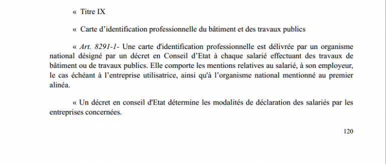 La carte professionnelle permettra de mieux lutter contre le travail illégal