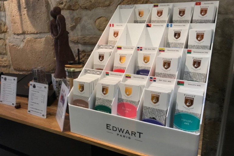 (*) Les boutiques Edwart Chocolatier à Paris se trouvent au 17, rue Vieille du Temple (75004) et au 244, rue de Rivoli (75001).