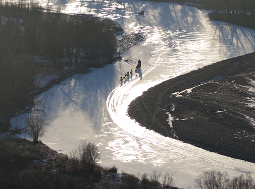 Plus tard, Nicolas Vanier et ses chiens ont emprunté une rivière pleine de cailloux, de glace et de pièges. Luttant ainsi pendant des heures avant de retrouver son équipe technique qui lui a confirmé qu'il n'y avait plus qu'à suivre cette rivière.