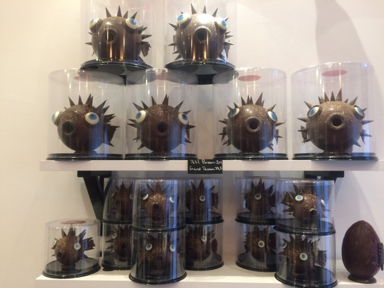 Des petits poissons-hérissons en chocolat avec de gros yeux à croquer