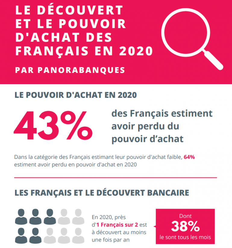 Un pouvoir d'achat pas toujours satisfaisant, qui pousse une partie importante de la population à recourir au découvert bancaire. Comme le note l'étude de Panorabanques, 51% des Français se retrouvent à découvert "au moins une fois par an". Certains sont même de véritables habitués. 20% des personnes interrogées disent être à découvert "tous les mois", dont 29% des 18-34 ans.