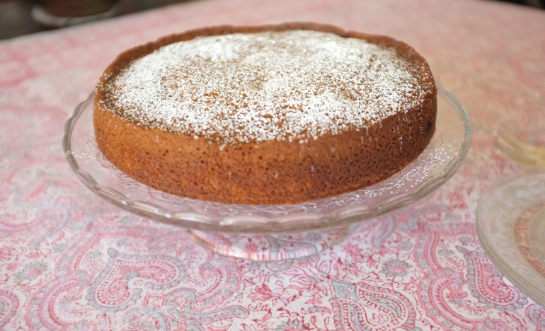 Cuire 30mn environ jusqu’à une belle couleur dorée, puis recouvrir d’une feuille de papier d’aluminium et continuer de cuire 30mn. Laisser refroidir complètement dans le moule. Ouvrir le moule, déposez sur le plat de présentation et saupoudrez de sucre glace au moment de servir.
