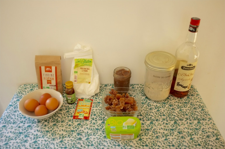Préparaer un gâteau sans gluten châtaigne et marron glacé