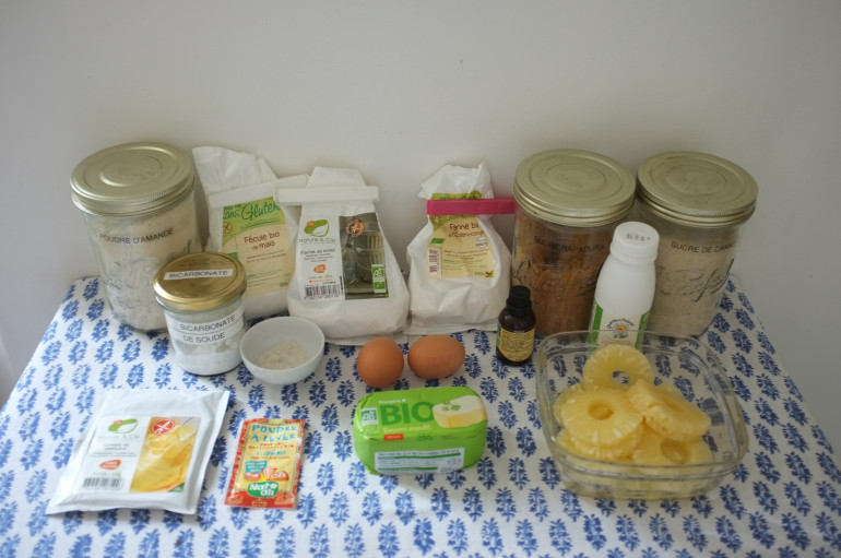 Cette recette sans gluten de gâteau renversé à l'ananas est très facile à réaliser. Elle peut se préparer avec de l'ananas frais, mais aussi toute l'année avec de l'ananas en conserve. Ce fruit tropical est très riche en manganèse, en cuivre, en potassium et en vitamines B1, B2, B6. Il contient surtout de la bromeline, un enzyme qui est excellent pour la circulation sanguine et les maladies cardiovasculaires, ainsi qu'un bon anti-inflamatoire et qui régule le système immunitaire.