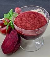 - Démarrez à vitesse 6 et commencez par insérer la betterave, puis la menthe, les racines et le raisin.