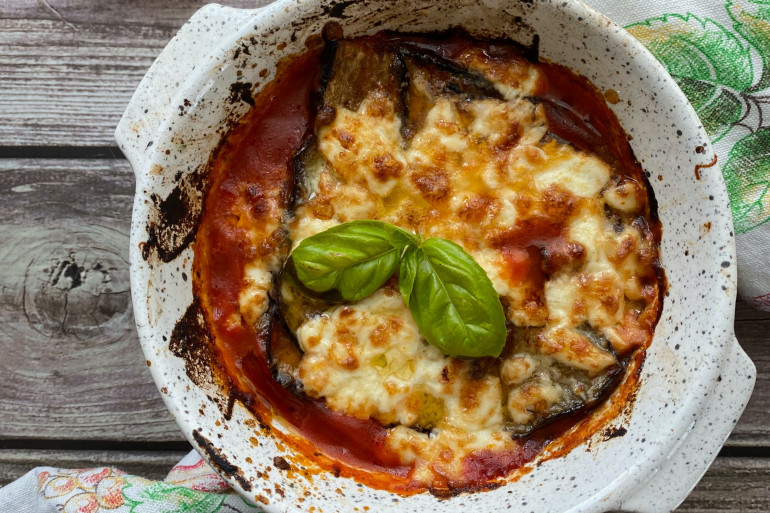 Dans un plat à gratin, mettez de la sauce tomate au fond, des aubergines, de la mozzarella tranchée. Râpez du parmesan frais puis recommencez les couches successives de sauce tomate, aubergine et mozzarella jusqu'en haut du plat. Enfournez pendant 20 minutes à 190 degrés "et ce qui est génial, c'est de la cuire un peu avant et de la réchauffer avant la dégustation", conclut Cyril Lignac.