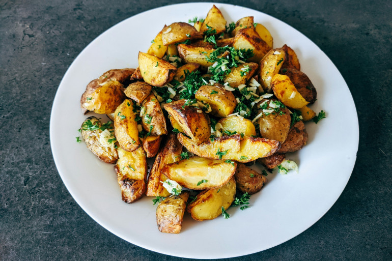 Laver soigneusement les pommes de terre. Les verser dans une casserole, les couvrir d’eau froide, saler et porter à ébullition. Faire cuire 20 minutes et égoutter les pommes de terre. Les laisser refroidir.