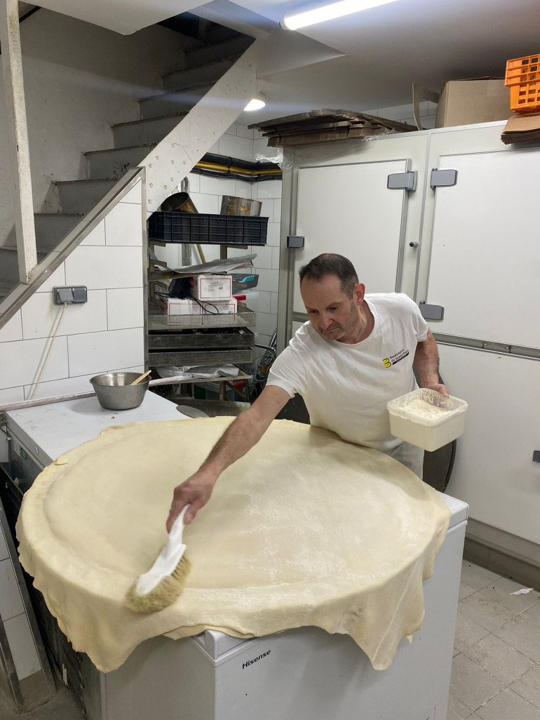 Patron de la boulangerie Le Moulin de la Croix Nivert, dans le XVe arrondissement de Paris, accorde un soin tout particulier à sa recette : "C'est impressionnant", confie-t-il, à propos du fait de travailler pour le président de la République. "C'est stressant, parce qu'on a toujours peur qu'elle ait un problème, qu'elle tombe, ou même qu'elle se rétracte au four", explique encore l'artisan.