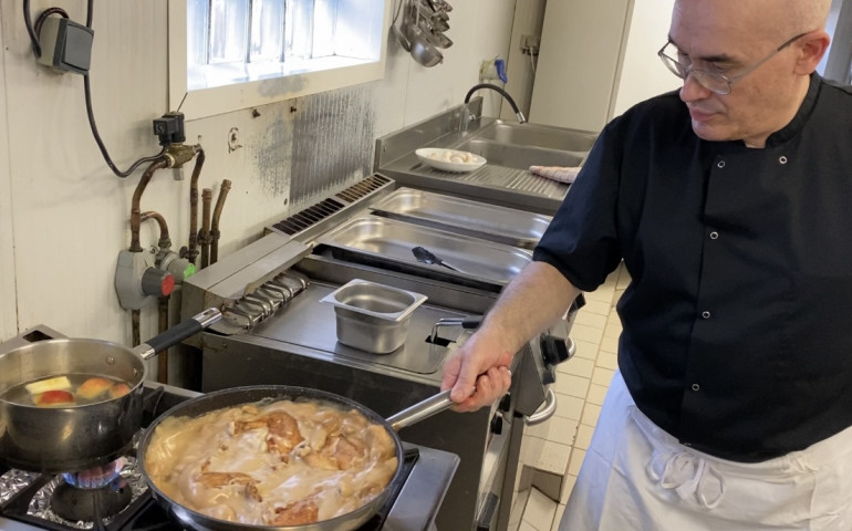 Vincent Dumoulin aux fourneaux pour la recette du poulet Vallée d'Auge