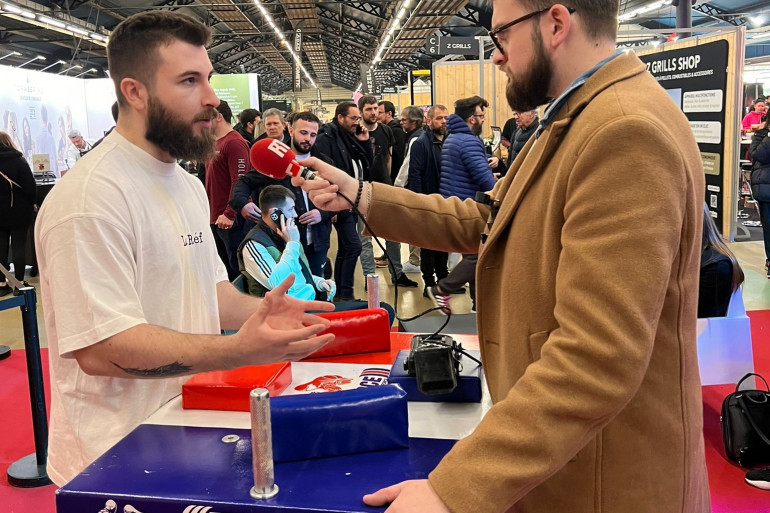 À côté des stands que l'on attend lors d'un tel événement, d'autres plus surprenants. Notamment celui de la Fédération Française de Force, qui proposait un tournoi de bras de fer. Il va de soi que toute ma bonne volonté et mon biceps n'ont pu rivaliser avec la technique de Raphaël Blin, capitaine de l'équipe de France de Bras de fer sportif. Le parti-pris du salon, comme c'est également le cas pour la pétanque, est clair : miser sur la convivialité et le partage. Faire un barbecue, c'est avant-tout, passer un bon moment, entouré de proches : oui, on mange, mais on rit, on s'amuse, on boit un verre (avec modération), etc. Telle est la définition proposée de "l'esprit du barbecue", en fournissant une expérience complète.