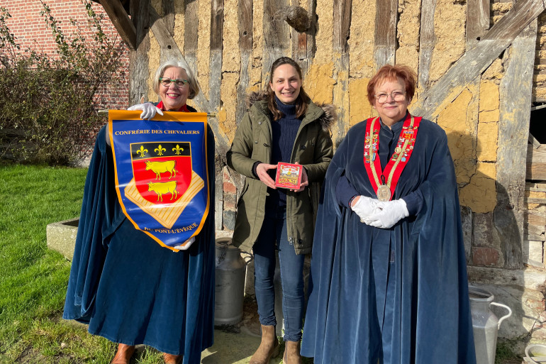 Caroline Martin avec la confrérie des chevaliers du Pont-L'évêque