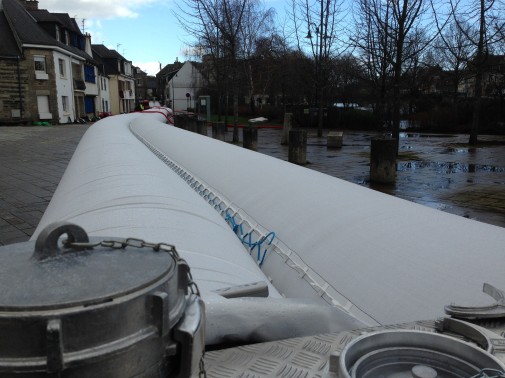 Pontivy, plus précisément rue de la Fontaine, une digue gonflable a été installée par les militaires.