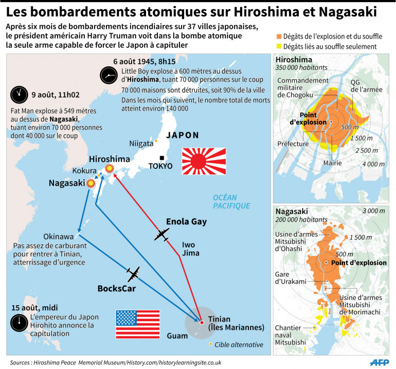 En 1945, on estime que 70.000 personnes ont perdu la vie instantanément au moment de l'explosion de la bombe, qui a détruit la quasi-totalité de la ville de Hiroshima. À cause de l’irradiation et des blessures subies au moment, le bilan s'établit même à 140.000 morts quelques mois après le drame. Trois jours après le largage de "Little Boy", les Américains avaient récidivé à Nagasaki, faisant cette fois un total de 70.000 victimes et poussant le Japon à capituler moins d'un mois plus tard, le 2 septembre 1945.