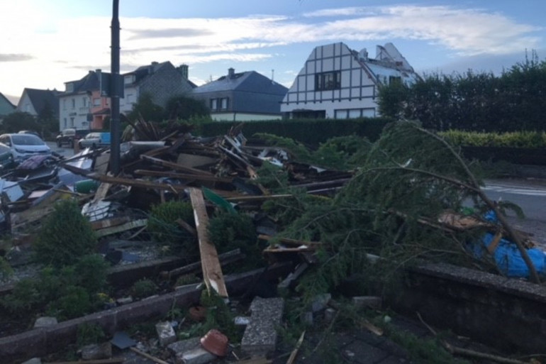 C'est l'image marquante de la soirée de ce vendredi 9 août. Une impressionnante et violente tornade a balayé la frontière luxembourgeoise avec des rafales de vent atteignant 128 km/h. De nombreux dégâts ont été causés à l'image de toits ravagés ou d'arbres et de cheminées emportés.