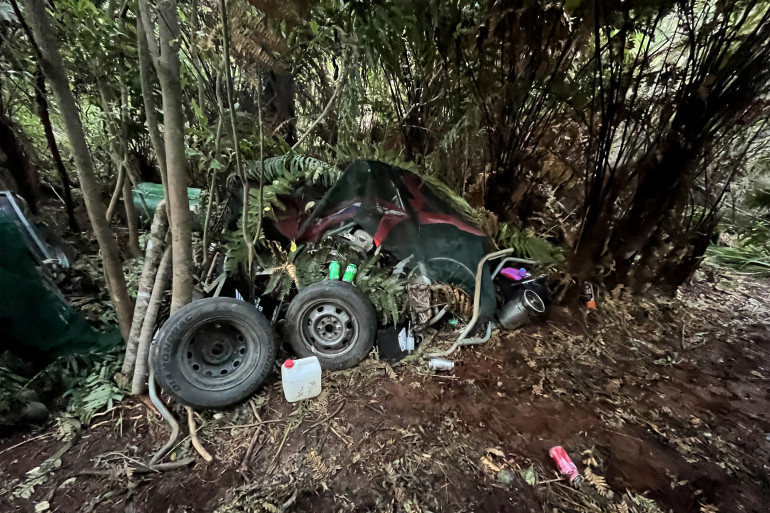 Dans la cachette de la famille Phillips, nichée parmi les broussailles, se trouvaient deux quads rouges, des armes à feu et des munitions, ont déclaré les policiers. Les forces de l'ordre ont également trouvé un bidon de carburant, des pneus de rechange et des bouteilles vides.