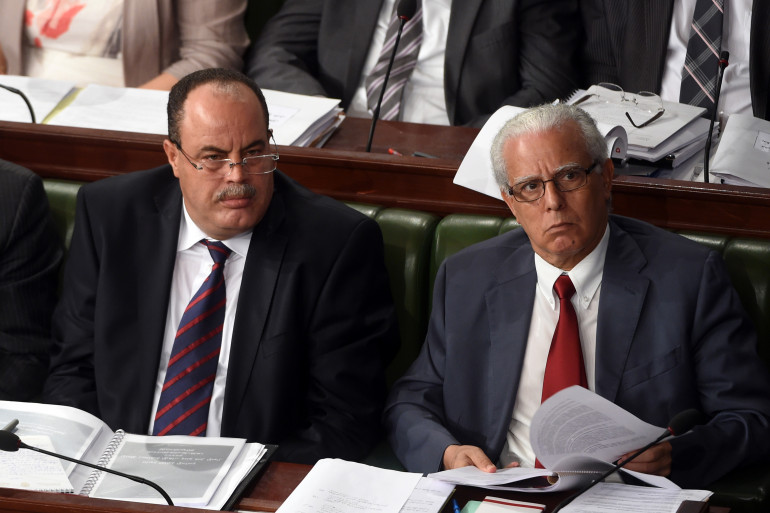 Le ministre de la justice tunisien Mohamed Salah Ben Aïssa, à droite du ministre de l'Intérieur Neji Gharsalli