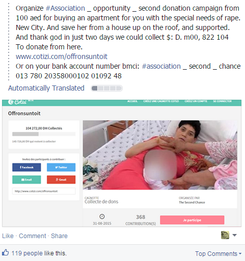 Son histoire et la précarité dans laquelle elle se trouve a poussé des internautes à se mobiliser. "J'ai vu le reportage à la télé et j'ai voulu aider à ma manière en faisant un petit rêve : offrir au moins un toit à cette femme", explique Kawtar Nafid, initiatrice de l'appel au dons. L'association caritative marocaine "The Second Chance" a parrainé le projet et a lancé la campagne de dons, phénomène relativement nouveau au Maroc.