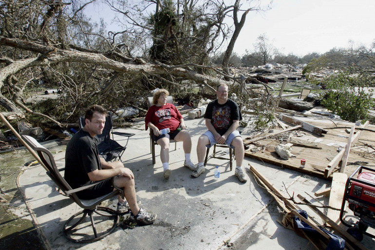 Famille vivant dans le Mississipi devastée après les dégâts de l'ourgan Katrina en août 2005.