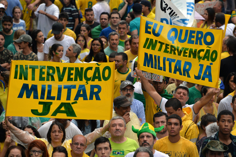 A Rio, de nombreux manifestants réclamaient même que l'armée intervienne pour mettre fin à 12 ans de pouvoir du PT, le jour même où le Brésil célébrait le 30e anniversaire du rétablissement de la démocratie après une longue dictature militaire entamée en 1964.
