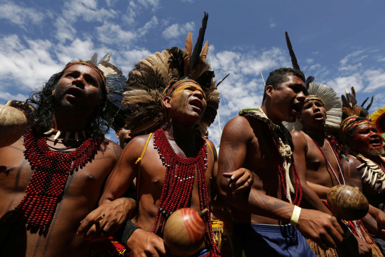 Des indigènes lors de la manifestation à Brasilia le 26 avril 2018