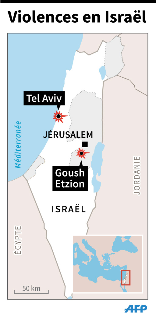 Il s'agit de la deuxième attaque au couteau de la journée. Plus tôt, un Palestinien de 17 ans avait poignardé un soldat israélien près d'une gare de Tel-Aviv. La victime a succombé à ses blessures dans la soirée.