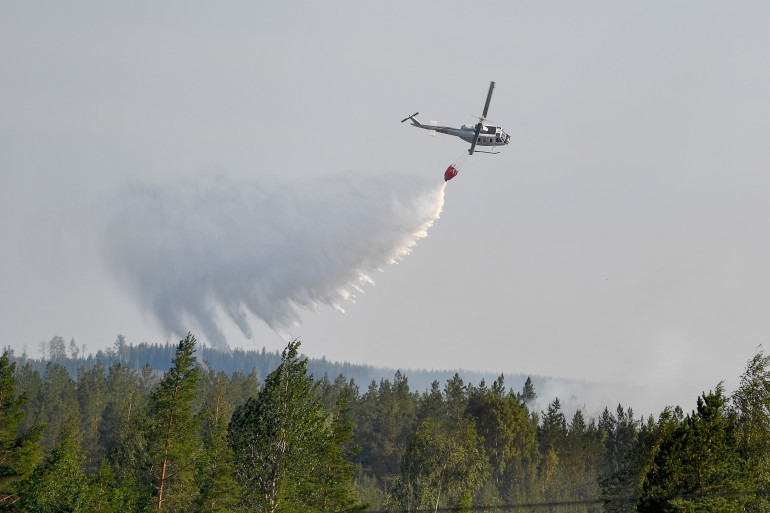 Un hélicpotère largue de l'eau en Suède, le 17 juillet 2018 (illustration)